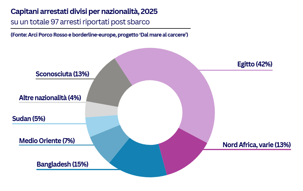 Progetto ‘Dal mare al carcere’, report annuale 2025. Dal mare al carcere è un progetto militante da Arci Porco Rosso e borderline-europe che, dal 2021, monitora l’andamento della criminalizzazione dei cosiddetti scafisti in italia, e offre supporto socio-legale alle persone criminalizzate.